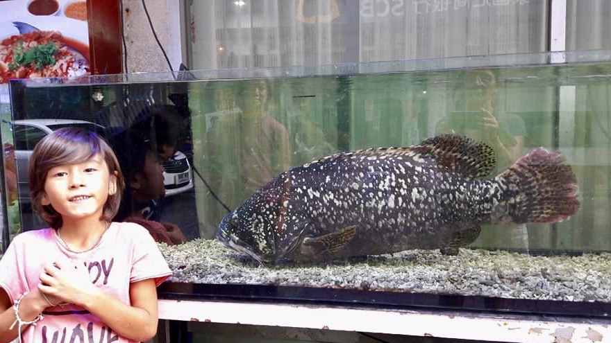 Dimanche 23 février, nous quittons Ranong et atterrissons à Bangkok (aéroport Don Muang) vers 14h. Nous arrivons dans notre hôtel situé en plein Chinatown. Il y a peu d'animation car nous sommes dimanche. Nous ferons un petit tour dans le quartier et passerons devant certains étals dont un qui vend des brochettes de scorpion grillé. Nous n'y goûterons pas ! Au retour, nous nous arrêterons devant les aquariums d'un restaurant où sont proposés d'énormes poissons.