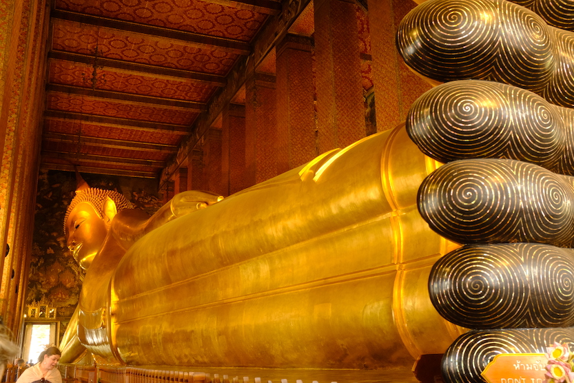 Nous enchaînons l'après-midi par le Wat Pho où se situe notamment le fameux Bouddha couché de 46 m !