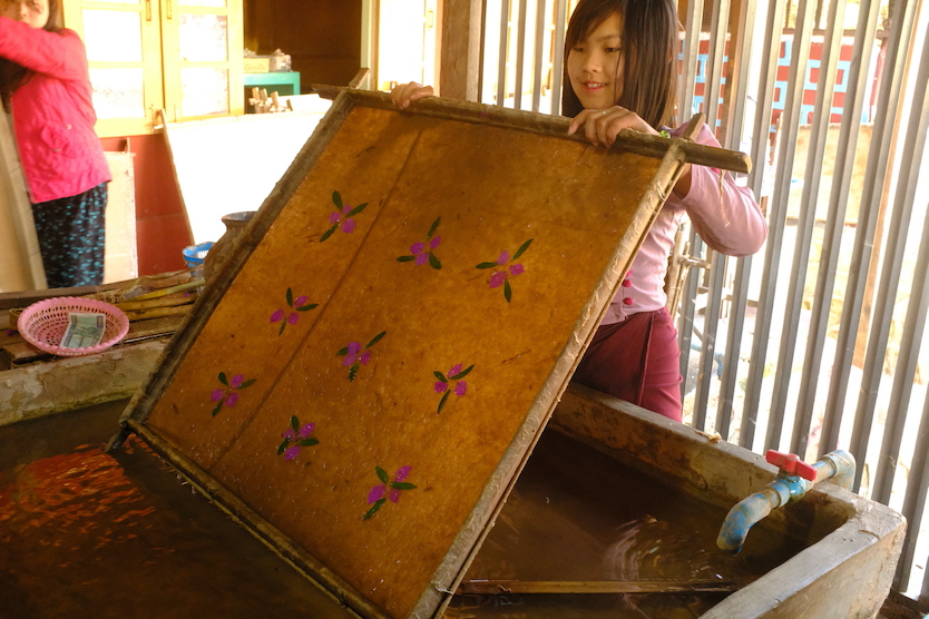Nous visiterons aussi une fabrique de papier artisanal. Nous naviguerons ensuite au milieu des cultures flottantes, construites à base de boue et de bambous (tiens, ça me rappelle les iles flottantes de Uros sur le lac Titcaca au Pérou ;-). La production de légumes est variée mais ils cultivent principalement des tomates. Nous rentrons tranquillement en fin d'après-midi.