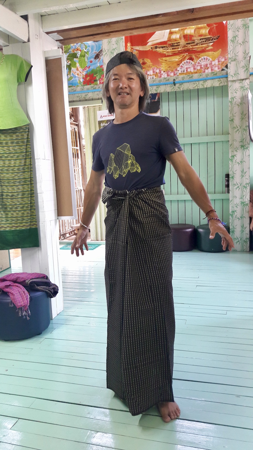 Nous arrivons à notre nouvel hôtel au sud de lac, à In Phaw Kone. On nous installe dans une petite cabane sur pilotis toute proprette, le lieu a un charme fou ! Nous avons là encore la chance d'assister à un magnifique coucher de soleil, face à notre chambre. Le même batelier nous emmènera visiter un atelier de tissage. Ici, ils sont nombreux. Ils tissent notamment des fibres de lotus. Le travail est fastidieux d'où le prix élevé des articles. Julien se contentera d'une très belle écharpe aux motifs traditionnels, tissée sur place mais en coton. Nous retournons à notre hôtel pour le dîner. Le lieu est paisible et la nourriture, excellente. A notre grande surprise car on nous avait dit que la cuisine birmane ne valait pas la cuisine thaïlandaise. Au passage, j'adore leur sauce à la cacahuète.