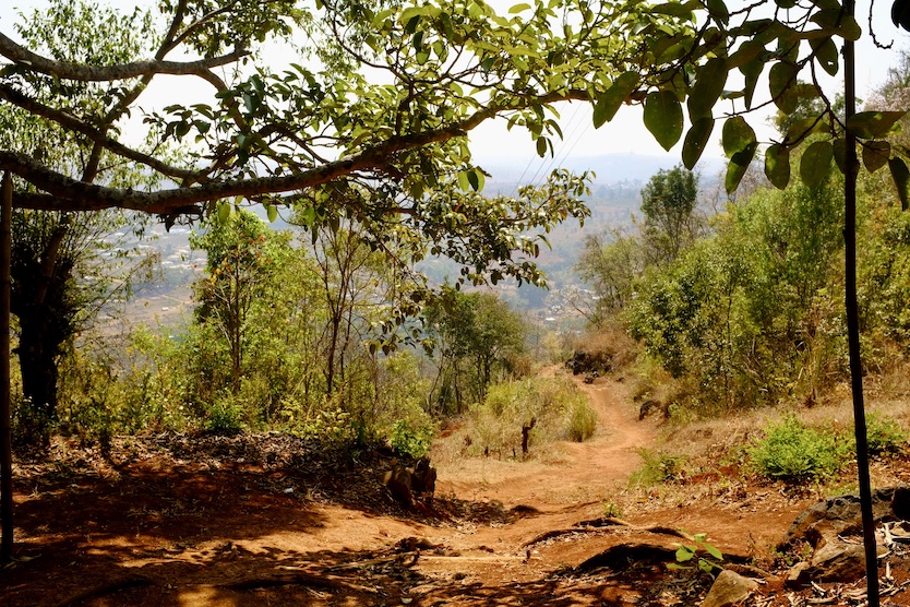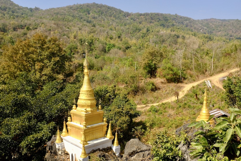 Le lendemain matin, nous partons pour un petit trek de 4 heures, nous prenons un peu d'altitude et arrivons à un sommet à 1200 m. Nous traversons de petits villages paisibles et prenons un petit sentier qui mène à la grotte des 8000 Bouddhas.